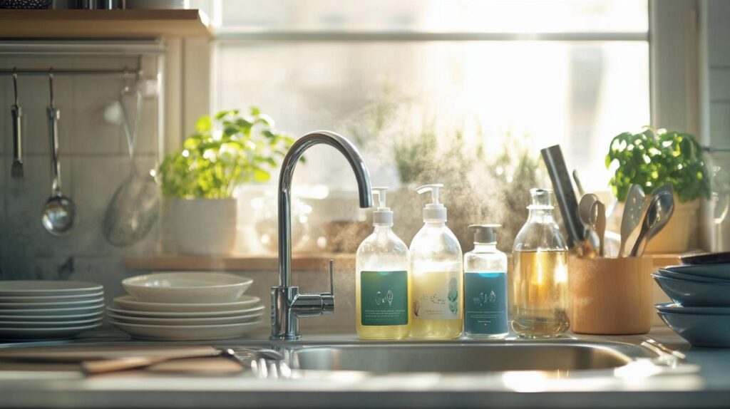 Un liquide vaisselle performant ne se contente pas de nettoyer efficacement, il doit également se rincer facilement sans laisser de résidus glissants ou de film gras sur les surfaces. La facilité de rinçage est un critère souvent négligé mais qui influe grandement sur le confort d’utilisation et la consommation d’eau. Certaines formules nécessitent plusieurs passages sous l’eau pour éliminer complètement la mousse, ce qui augmente inutilement la consommation d’eau et le temps consacré à cette tâche. Les produits de qualité se rincent rapidement à l’eau claire, laissant la vaisselle propre et sans traces. Au-delà du nettoyage visible, un bon liquide vaisselle doit également posséder une capacité à éliminer les odeurs tenaces qui s’incrustent parfois dans les ustensiles de cuisine. Les odeurs de poisson, d’ail ou d’oignon peuvent persister malgré un lavage classique, ce qui rend indispensable l’utilisation d’un produit capable de neutraliser ces senteurs désagréables. L’ajout de vinaigre blanc dans l’eau de rinçage constitue une solution naturelle et efficace pour renforcer cette action désodorisante. Concernant la composition, il est essentiel de vérifier la liste des ingrédients pour éviter les parfums et conservateurs allergènes. Les substances comme la méthylchloroisothiazolinone, la méthylisothiazolinone et la benzisothiazolinone sont reconnues pour leur potentiel allergisant et doivent être évitées autant que possible. L’acide lactique représente une alternative préférable comme conservateur, car il présente un profil de sécurité plus favorable pour les peaux sensibles.